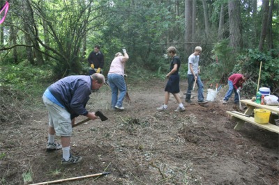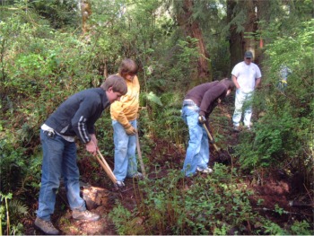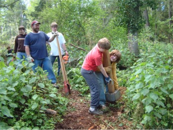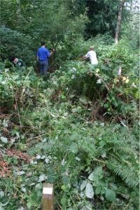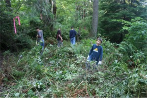 "Cougar Camp" activity area, clearing out dense underbrush,