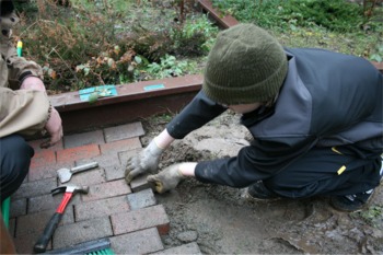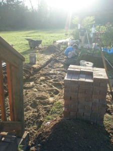 concrete pavers around the engraved bricks, making a formal, yet rustic