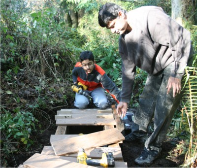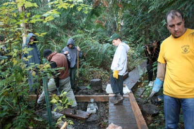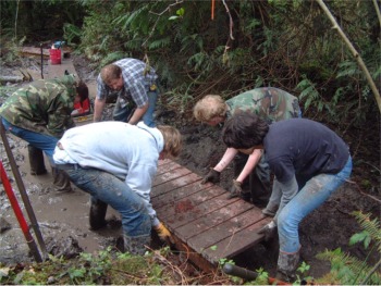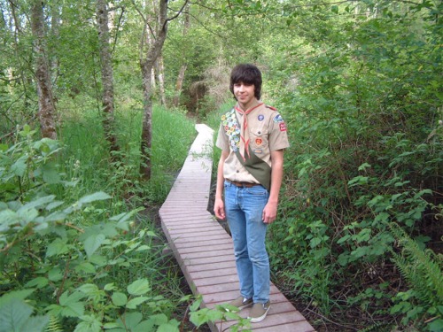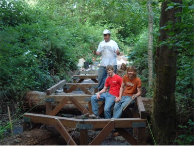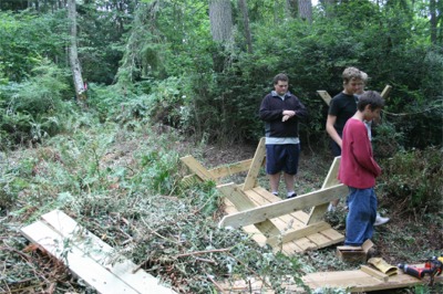Fox Island's Troop 27, where they built a 10' long footbridge over a