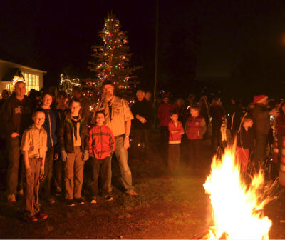 Pack 27 built the bonfire for this year's Christmas tree lighting
