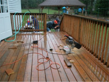 flagpole, removing old nails and rotted wood, applying a fresh coat of