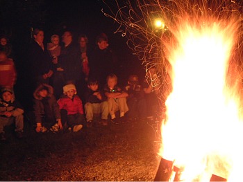 the bonfire sang Christmas carols while awaiting Santa's arrival. When