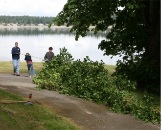 out some overgrown beach area near the end of Ian's trail, and built