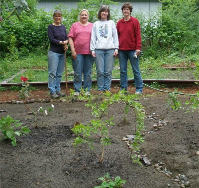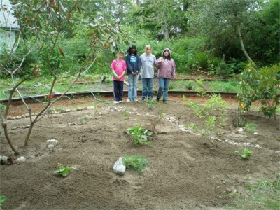 The girls admire the completed garden. |