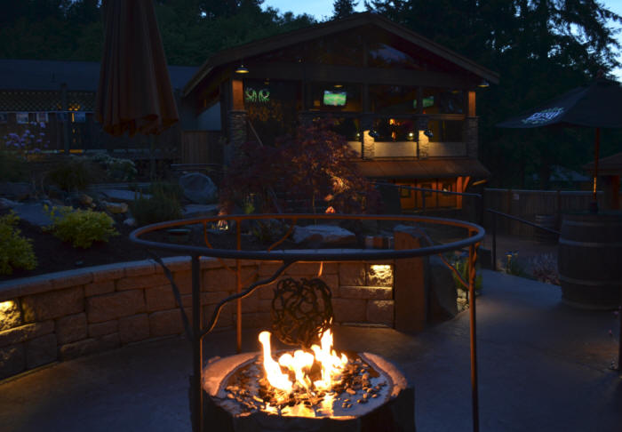 Two 'Flaming Fountain' fire pits are the centerpiece of the outdoor section of Zog's at the Fox Island Deli