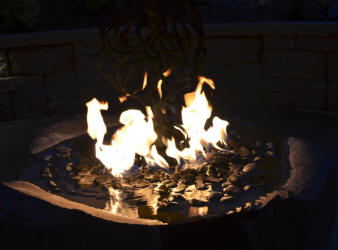 Two 'Flaming Fountain' fire pits are the centerpiece of the new Fox Island Deli expansion.